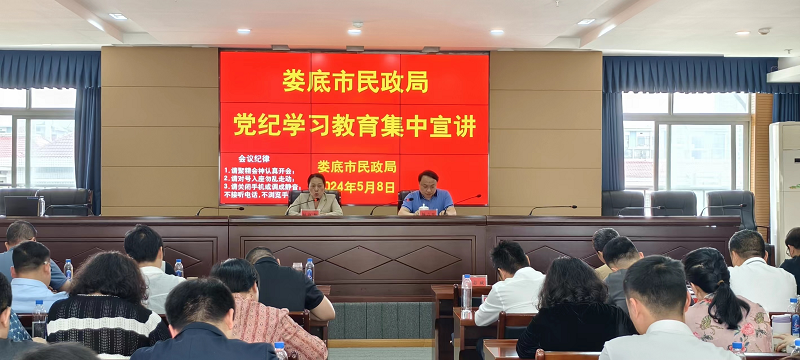 为深入学习贯彻习近平总书记关于党的建设的重要思想和关于党纪学习教育的重要讲话和重要指示精神,教育引导市民政系统党员干部严格贯彻落实《中国共产党纪律处分条例》,5月8日,按照市委关于党纪学习教育的部署安排,娄底市民政局邀请市委宣讲团成员、市纪委监委调研法规室主任杨志平赴该局进行党纪学习教育集中宣讲。娄底市民政局局长何红梅主持并作总结讲话,市纪委监委派驻人社局纪检组组长曾劼,局机关全体干部职工、局属单位班子成员、纪检专干、老干支部以及市社会组织综合党委所属党支部书记及党务专干共计80余人参加此次宣讲。