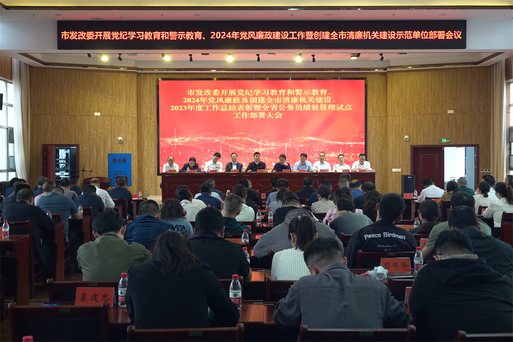 4月18日,娄底市发改委组织全委干部职工开展党纪学习教育和警示教育活动,召开2024年党风廉政建设工作暨创建全市清廉机关建设示范单位部署会议。党组书记、主任曾晚生主持活动及会议,市纪委监委常委刘志升到会指导。