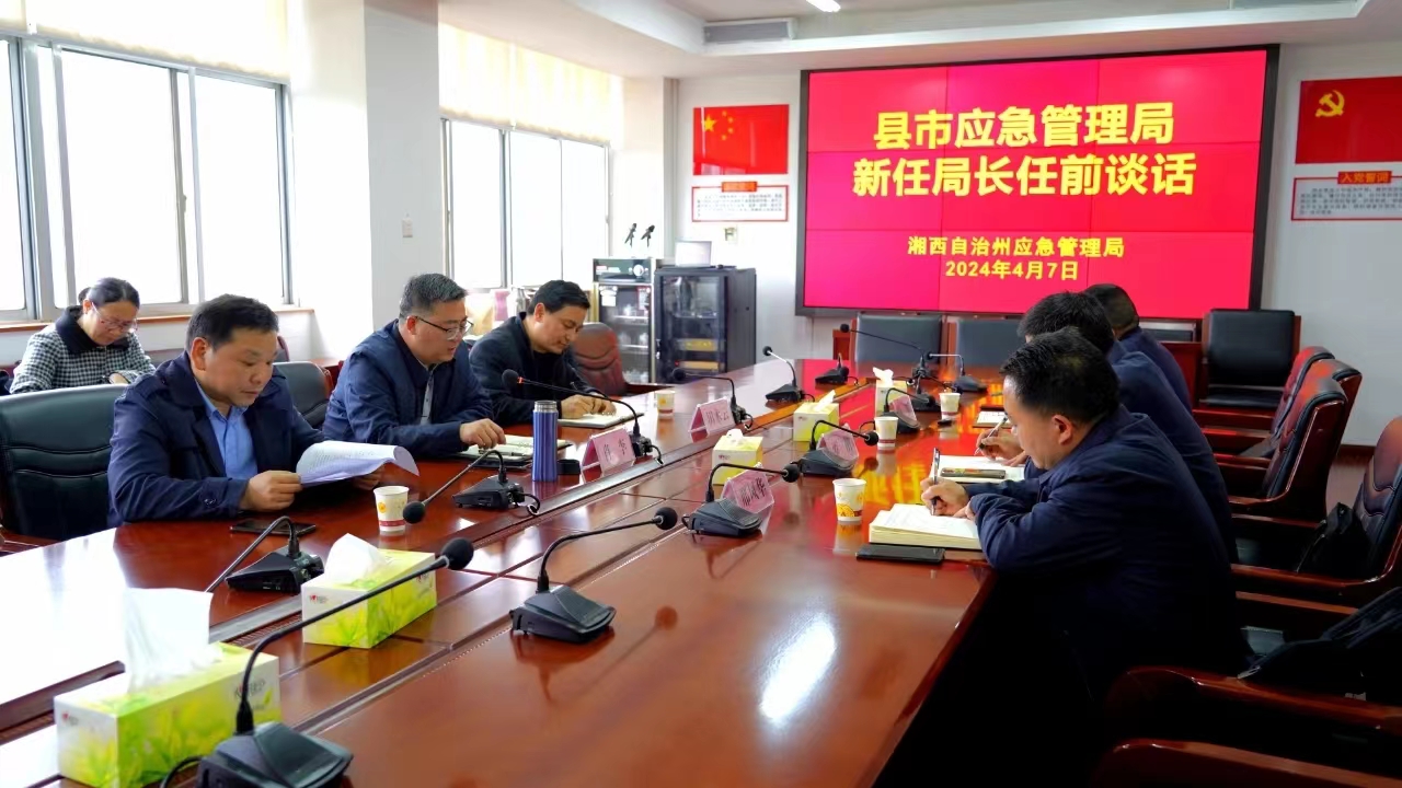 4月7日,湘西州应急管理局召开县市应急管理局主要负责人任前谈话会议,湘西州应急管理局党委书记、局长肖李参加会议并讲话,局党委委员、政治部主任田术云主持会议,三名县市应急管理局主要负责人以及局相关科室负责人参加会议。