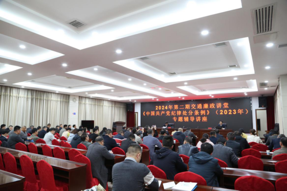 3月22日下午,株洲市交通运输局举办2024年第二期交通廉政讲堂,集中学习新修订的《中国共产党纪律处分条例》(以下简称《条例》)。邀请了市纪委监委案件审理室主任宋建华作专题辅导授课,局党组书记、局长付访华主持学习。在家局领导、局机关副科级以上实职干部、局属单位班子成员(含党委委员)、局党组向局属单位派出纪委书记和联络员、局机关及局属单位党支部书记等参加学习。