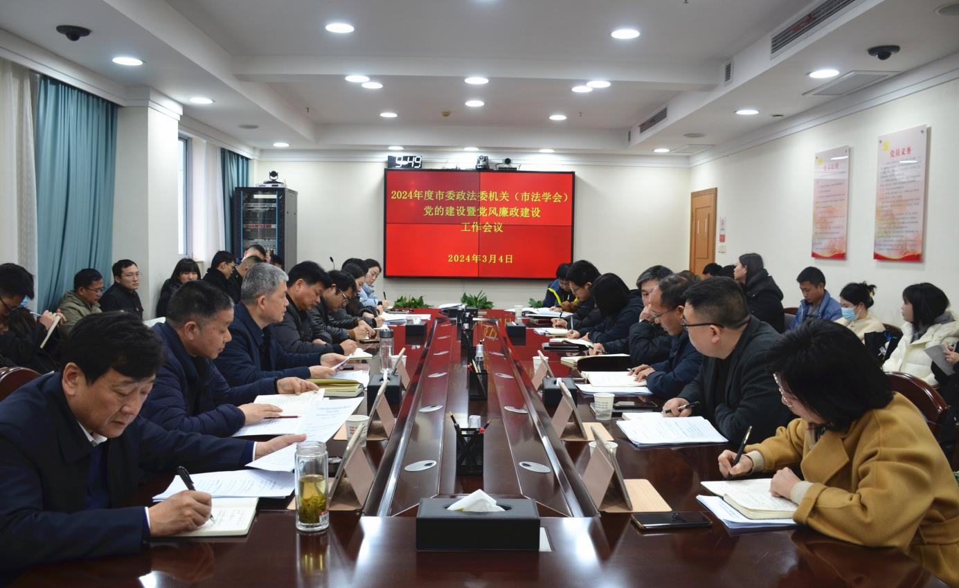 3月4日,常德市委政法委机关(市法学会)召开党的建设暨党风廉政建设工作会,总结回顾2023年工作,部署2024年工作任务。常德市委政法委常务副书记、直属机关党委书记胡文出席会议并讲话。