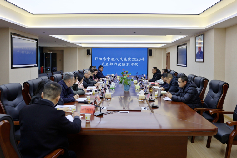2月2日,邵阳市中级人民法院召开2023年度机关党支部书记述职评议考核会。中院党组成员、政治部主任李杰红主持并讲话,机关党委委员参加会议。