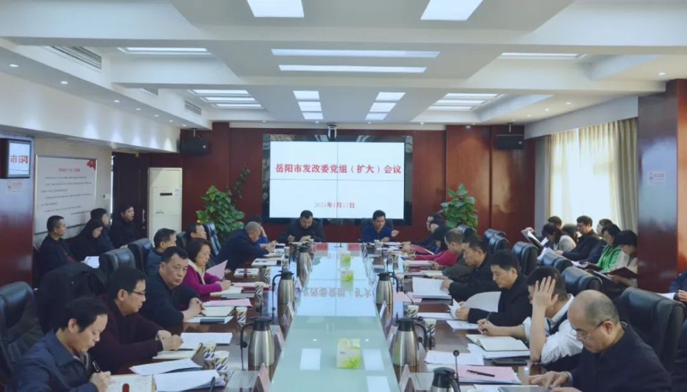 1月12日下午,岳阳市委财经办主任,市发改委党组书记、主任林军华主持召开党组(扩大)会议,学习习近平总书记二〇二四年新年贺词,解读岳阳市委八届六次全会精神、全省发展和改革工作会议精神,传达市九届人大四次会议和市政协九届三次会议精神,安排部署当前重点工作。