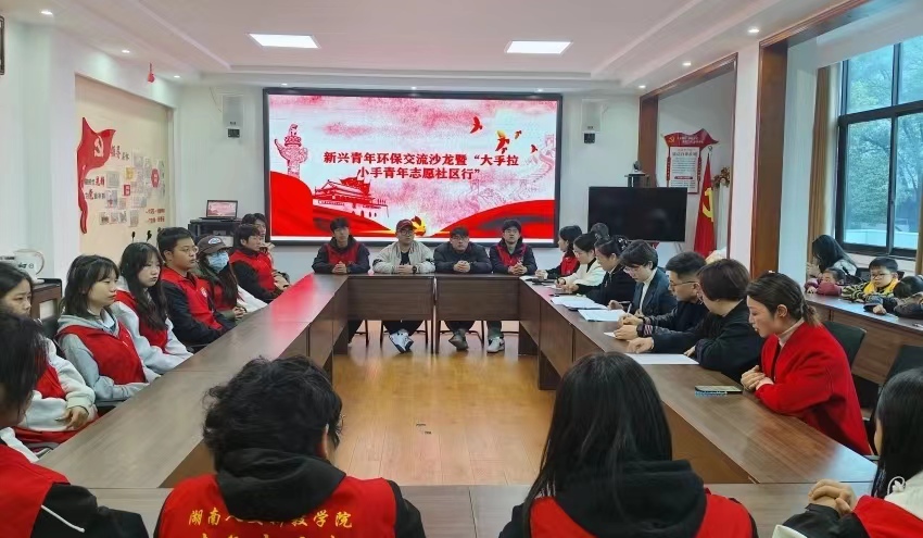 图为12月10日,娄底市开展新兴青年环保交流沙龙暨“大手拉小手·青年志愿社区行”活动