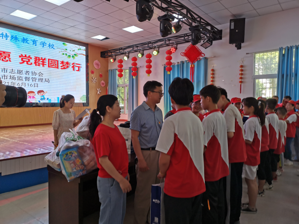 怀化市中心特殊教育学校里有一群特别的孩子,他们之中有的听不见,有的不能说话,有的身体残疾,他们的心愿仅仅是希望拥有一件新衣服。这一“微心愿”发布后,市市场监管局立即认领,全局党员干部踊跃参与,争当“圆梦使者”,捐款近6000元,为孩子们购买了56套新衣服。此后,该局机关党委将“圆梦仪式”列为支部主题党日内容,把饱含殷殷祝福的爱心礼物一一送到孩子们手中,鼓励他们好好学习,做文明、守纪、爱党、爱国的好孩子,达到了“群众得实惠,党员受教育”的目的。