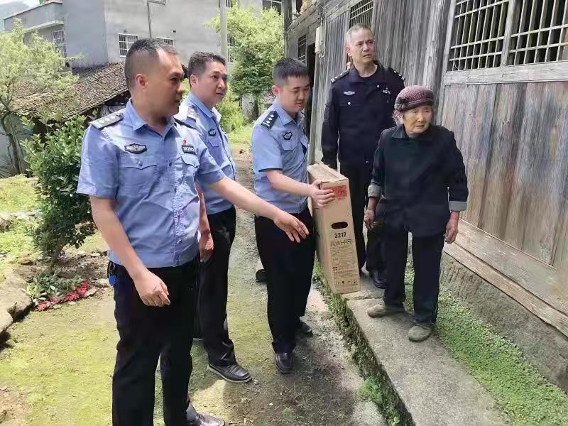 溆浦县龙潭镇栗山村七组村民张香菊已经85岁高龄了,是村里的低保户,老人的“微心愿”是添置一台新电视机。得知老人心愿后,该县森林公安局主动认领,购买了一台32英寸彩色电视机,利用休息日,驱车80余公里,送到老人家中。老人看着新电视机,连连表示感谢,激动地说:“没想到你们这么快就给我送来了新电视机!”她褶皱的脸上泛出了笑容。看到这一幕,在场的民警心里也暖暖的。
