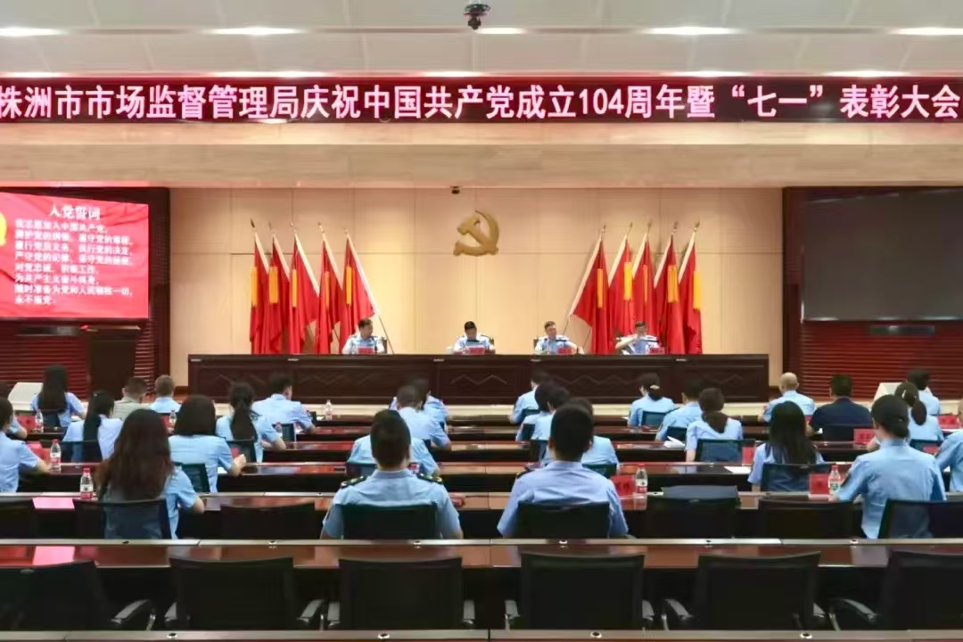 为庆祝中国共产党成立104周年,弘扬伟大建党精神,表彰先进,凝聚力量,7月1日,株洲市市场监督管理局召开庆祝建党104周年暨“七一”表彰大会。局党组成员、机关党委及机关纪委委员、机关支部及局属单位党组织支委、离退休支部书记、优秀党员和优秀党务工作者等共100余人参加会议。会议由局党组成员、副局长彭爱云主持。