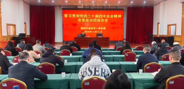 根据市委统一安排,12月10日,邵阳市退役军人事务局举行学习贯彻党的二十届四中全会精神宣讲报告会。市委宣讲团成员、市政协研究室主任袁卫东应邀作宣讲报告,市退役军人事务局党组书记、局长姜卫军主持报告会,局机关及局属各单位全体干部职工参加。