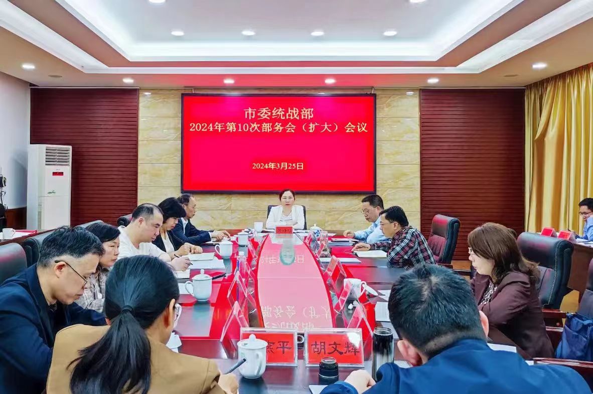 3月25日,郴州市委常委、市委统战部部长黄峥嵘主持召开市委统战部2024年第10次部务会(扩大)会议,传达学习习近平总书记在湖南考察时的重要讲话和指示精神、在新时代推动中部地区崛起座谈会上的重要讲话精神,以及省委常委会(扩大)会议和市委常委会(扩大)会议精神,研究贯彻落实意见。