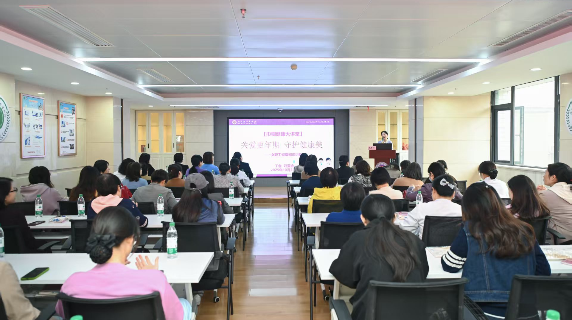 在全球妇女峰会关注女性全生命周期健康的背景下,湖南省人民医院工会、妇委会联合多科室打造“巾帼健康大讲堂”。10月31日举办“关爱更年期・守护健康美”女职工健康知识讲座,70多名40 - 55岁女职工参加。党委副书记致辞强调更年期科学管理的重要性以及医院的公益助力决心。四位专家分别从运动、营养、心理、生理变化角度进行讲解并解答女职工疑问。工会副主席总结指出更年期是疾病预防关键期和生活重启契机。讲座后有互动答疑环节,还有20人参与人体成份分析免费体验。此次活动是医院响应峰会倡导、保障女性健康权益的实践,女职工