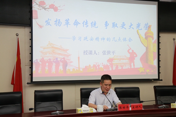 此次学习以学史崇德为主题。局党组书记、局长张世平带头讲党史党课,他结合自己在延安干部学院学习经历,为大家带来了主题为《发扬革命传统,争取更大光荣——学习延安精神的几点体会》的精彩党课。