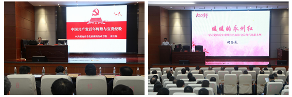 坚持把党史学习教育作为“重头戏”。党史学习教育是当前党建工作的一个重点,培训班结合实际把党史课作为作为“必修课”。特邀了湖南省委党校谌玉梅教授以《党的百年辉煌史》为题上“开班第一课”;同时邀请全国理论宣讲先进个人、永州市就业服务中心主任何昌盛同志讲授《暖暖的永州红》。学员们在学习培训中深入了解中国共产党走过的光辉历程、积累的宝贵经验、形成的光荣传统、铸就的卓著功勋,更加自觉地从党的历史中汲取开拓前进的智慧和力量,永葆政治本色、恪守人民情怀、强化历史担当。