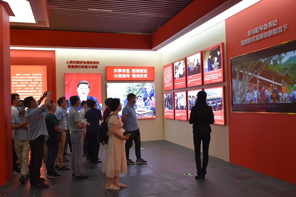 省脱贫攻坚大型成就展以“精准扶贫三湘巨变”为主题,分“历史伟业”“首倡之为”“磅礴力量”“希望田野”四个篇章,回顾党的十八大以来精准扶贫的重大决策部署,全面展示湖南作为精准扶贫首倡之地的首创之为、巨大成就和宝贵经验。观展过程中,大家认真聆听解说员讲解,不时驻足细看、相互交流、拍照留念。一份份庄严的责任状、一张张精细的作战图、一串串喜人的对比数据……大家真切地感受到脱贫攻坚给湖南贫困地区带来的翻天覆地的变化,真切感受到广大脱贫群众的获得感、幸福感和脱贫攻坚带给贫困地区人民的新风貌、新气象。同时,也从三湘大地发生的巨变中感悟到习近平新时代中国特色社会主义思想的真理伟力和社会主义制度的巨大优越性。