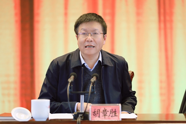 (图为厅党组书记、厅长胡章胜主持会议并讲话)