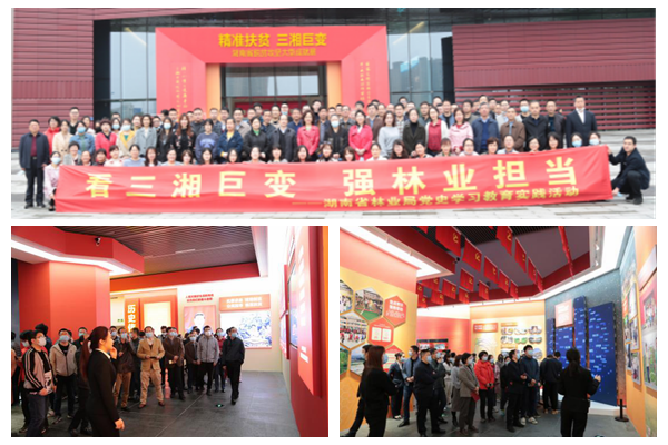 4月26日,省林业局组织局直系统干部职工100余人参观《精准扶贫 三湘巨变——湖南省脱贫攻坚大型成就展》。展览以“精准扶贫 三湘巨变”为主题,通过“历史伟业”“首倡之为”“磅礴力量”“希望田野”四个篇章,回顾党的十八大以来精准扶贫的重大决策部署,全面展示湖南作为精准扶贫首倡之地的首创之为,生动讲述湖南党员干部、社会各界和人民群众的典型事迹和感人故事,倾情分享广大脱贫群众的获得感、幸福感、安全感,全景展望打赢脱贫攻坚战后开启“十四五”新征程、大力实施乡村振兴、建设现代化新湖南的美好未来。参观人员深受震撼,感慨三湘发生的巨大变化,感叹参与脱贫攻坚全体人员的辛勤付出,也坚定了要巩固脱贫攻坚成果、奋力推进乡村振兴的决心。