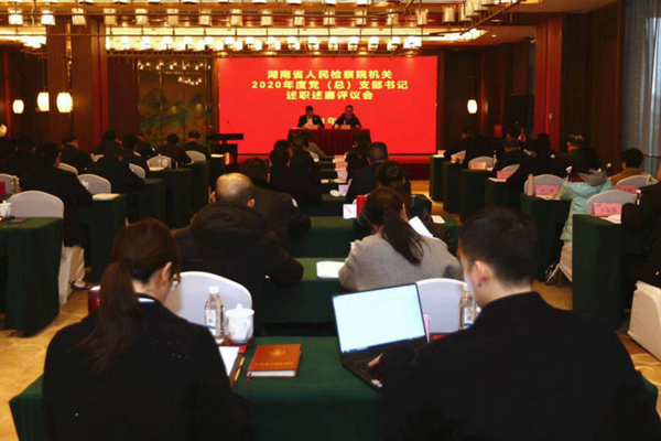 本次述职评议考核会结合支部书记培训班组织召开,6名支部书记进行现场述职,其他支部书记书面述职。张恒洲在认真听取现场述职和查看书面述职报告后进行了集中点评,充分肯定了各支部书记履行党建责任取得的成绩,指出了存在的短板和共性的薄弱环节。要求大家提高政治站位、强化责任担当、勇于探索创新,全面贯彻落实新时代党的建设总要求和党的组织路线,以强有力的党建引领开启湖南检察事业新征程,为实施“三高四新”战略、建设现代化新湖南贡献检察力量,以优异成绩献礼建党100周年。