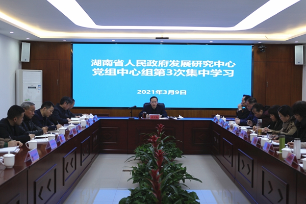 3月9日,省政府发展研究中心党组书记、主任谈文胜主持开展党组理论学习中心组第三次集中学习。谈文胜领学了习近平在省部级主要领导干部学习贯彻党的十九届五中全会精神专题研讨班和在中央政治局第二十七次集体会议上的两个重要讲话,在家班子成员分别领学了王沪宁、黄坤明在全国宣传部长会议上的讲话,以及《关于做好长江保护法学习宣传工作的通知》等相关文件。党组成员、副主任禹向群,党组成员、二级巡视员蔡建河作中心发言;办公室主任罗德强、宏观经济部部长唐文玉作交流发言。二级巡视员、各部室(所属单位)负责同志参加学习。