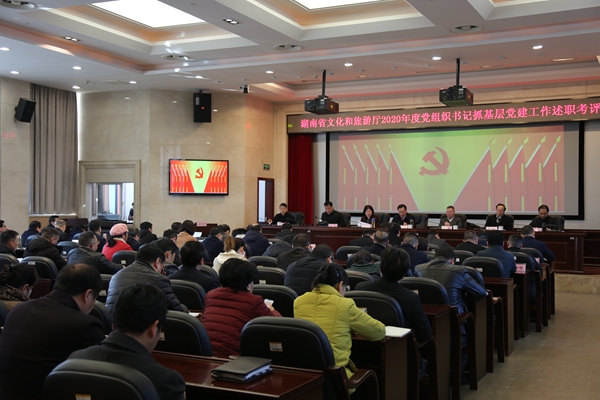 1月19日,省文化和旅游厅召开2020年度党组书记抓基层党建工作述职评议考核会议。省委宣传部副部长、省文化和旅游厅党组书记、厅长禹新荣出席并讲话。厅领导高扬先、黄东红、吴杰、张帆、王超祥、喻树长出席。会议由省文化和旅游厅党组成员、副厅长、机关党委书记尚斌主持。