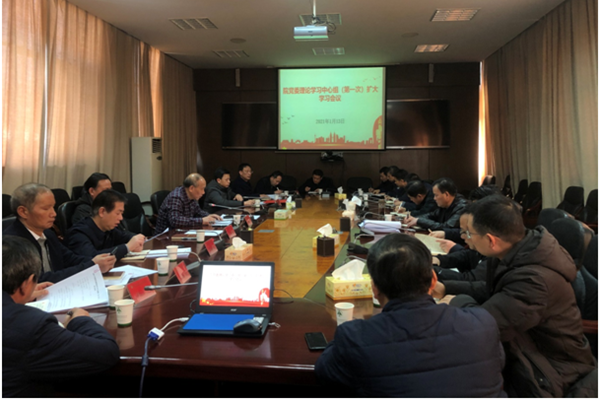 1月13日,中南院党委召开理论学习中心组2021年度第一次(扩大)学习会议。会议集中学习了习近平总书记在中央政治局民主生活会和在省部级主要领导学习贯彻十九届五中全会精神专题研讨班开班式上的重要讲话精神。院长彭长清主持会议,院领导、院党委委员、各处室主要负责人、党支部书记参加了会议。