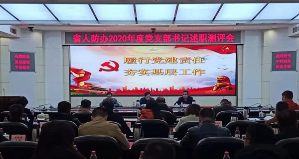 为落实“书记抓、抓书记”党建工作责任制,促进党支部标准化建设,12月29日,省人防办组织召开2020年度党支部书记述职评议大会,办领导、机关处室和直属单位各党支部书记及支部党员代表共37人参加会议。