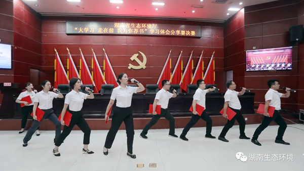 2020年“七一”前后,一场“大学习 走在前——我为你荐书”学习体会分享比赛在湖南省生态环境厅举行。厅系统13个青年理论学习小组、70多名青年干部,结合学习《习近平谈治国理政》《习近平在厦门》《习近平在宁德》等经典著作,以朗诵、音诗画、情景剧等形式分享学习感悟,展示成果,新湖南客户端全程进行“视频+图文”网络直播,点击量超13万人次,引发热烈反响。
