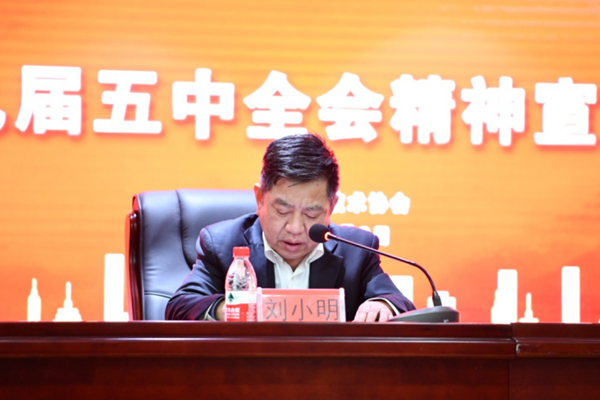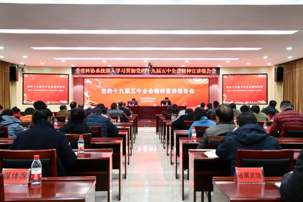 刘小明指出,今天的宣讲会既是一次学习贯彻党的十九届五中全会精神的学习会,又是一次深化学习贯彻的再安排、再动员、再部署。全省各级科协组织、广大干部职工和科技工作者要切实增强“四个意识”、坚定“四个自信”、做到“两个维护”,自觉把思想和行动统一到党的十九届五中全会精神和习近平总书记重要讲话精神上来,把学习贯彻党的十九届五中全会精神与学习贯彻习近平总书记对湖南工作的系列重要讲话指示精神、与学习贯彻习近平总书记关于科技创新与科学普及的重要论述、与学习贯彻习近平总书记对群团改革、科协工作的重要讲话指示精神、与学习贯彻省委十一届十二次全会精神融会贯通起来,统筹抓好落实。