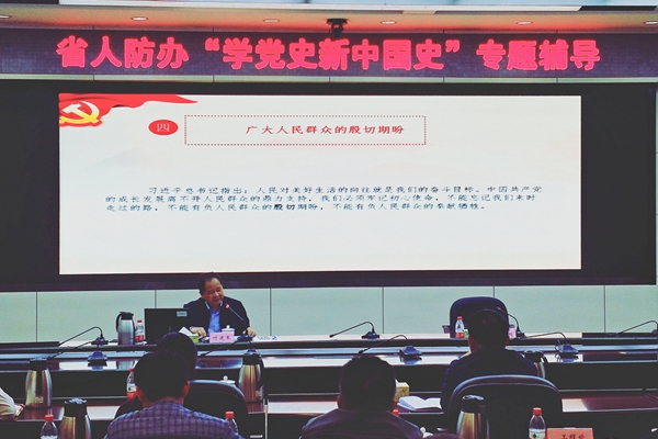授课结束后,省人防办党组书记、主任王志刚强调,要坚定理想信念,把学习党史、新中国史作为坚持和发展中国特色社会主义以及党和国家各项事业继续推向前进的必修课,增强认识把握历史规律和历史趋势的能力,知其所来、明其所趋,继往开来、坚定笃行,持续推动湖南人防事业高质量发展;要永葆奋斗精神,以史为鉴、以史为师,充分汲取历史智慧和经验,更加坚定走好新时代长征路,紧密围绕人防使命任务和湖南经济社会发展大局,深入调查研究,久久为功、绵绵用力,为加快人防治理体系和治理能力现代化,锻造坚不可摧护民之盾作出新的更大贡献;要常怀为民情怀,深刻认识党的执政使命和根本宗旨,从党和人民的鱼水深情中恪守人民情怀,牢记我们党来自人民、根植人民,把满足人民群众对美好生活的向往作为一切工作的出发点和落脚点,坚持人民防空为人民的初衷,充分激发人民群众中蕴藏的无穷智慧和力量;要主动担当作为,以深化党史、新中国史学习教育为契机,强化责任担当,着眼人防转型发展的新形势新任务新要求,自觉把履职思路和工作重点聚焦到夺取疫情防控和实现经济社会发展目标双胜利上,聚焦到人防主责主业上,在干事创业中不断提升湖南人防战时防空、平时服务、应急支援能力。