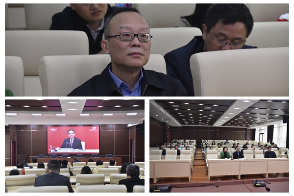 10月30日上午,湖南省社会主义学院党组理论学习中心组召开2020年第十次(扩大)集体学习,在同德楼阶梯教室集中收看介绍党的十九届五中全会精神直播实况,省委统战部副部长、院党组书记丁学新,院领导彭英、洪真健、彭仕敏以及全院干部职工一同收看。
