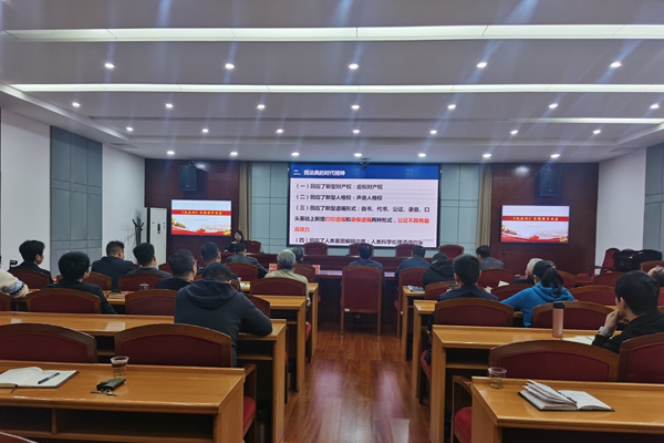 会议特邀湖南省委党校黄婷副教授作《民法典的时代精神与中国特色》专题辅导,从民法典编纂的基本情况、时代精神、中国特色等三个方面作了精彩授课。授课结合多个社会热点案件进行了解析,全面深入解读了《民法典》的法律规定和核心价值观的实践意义,具有很强的针对性、指导性和启发性。