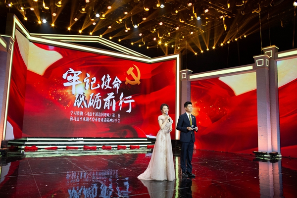 作为湖南广电党委理论学习中心组学习的重要内容,本次分享会创新性地把理论学习活动搬到了演播厅,既是一次党员干部的学习分享,也是一堂生动党课。活动现场,12个部门、单位结合实际工作,采取舞台剧、演讲秀等方式,生动演绎了《人民至上》《“熄灯号”后的视频会》《新时代的扁担精神》等一批学习节目,展示了学习贯彻《习近平谈治国理政》第三卷和习近平来湘考察重要讲话精神的丰硕成果。此外,“书记领学”作为本次活动的一项重要内容,12个部门、单位的党组织书记还参与录制了微访谈,畅谈了个人学习心得体会和本部门、单位的学习实践工作。