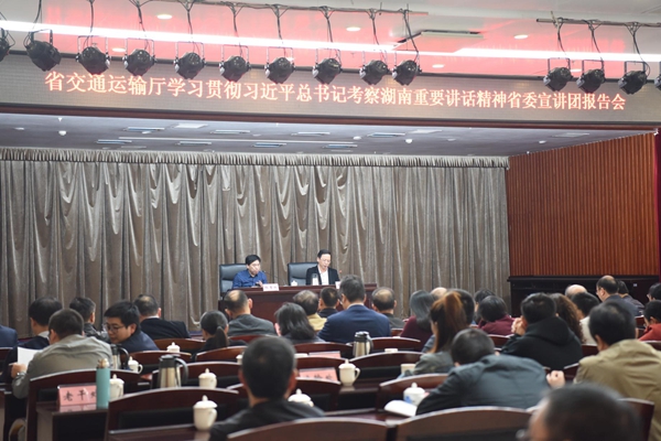 10月23日下午,省交通运输厅举行学习贯彻习近平总书记考察湖南重要讲话精神省委宣讲团报告会,邀请省委宣讲团成员、省直机关工委一级巡视员杨勇权作专题报告。厅党组成员、副厅长周自荣主持会议,厅直副厅级单位班子成员、厅直其他单位党政一把手,厅直各单位机关党委(党办、党群工作部)负责人、厅机关干部职工参加会议。