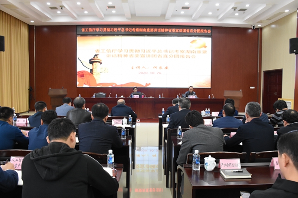 为进一步深入学习贯彻习近平总书记考察湖南重要讲话精神,更紧密围绕习近平总书记对湖南“三个高地”战略定位、更好承担起“四新”使命任务,推动湖南工业经济高质量发展,根据省委宣传部和省直机关工委统一工作部署,省工信厅于10月26日下午举办学习贯彻习近平总书记考察湖南重要讲话精神省委宣讲团省直分团报告会,省委宣讲团省直分团成员、省委党校哲学部主任何良安作专题宣讲辅导。报告会由省工信厅一级巡视员宁建业主持,全体在家厅领导、机关全体干部和在长厅属单位主要负责同志参加宣讲会。