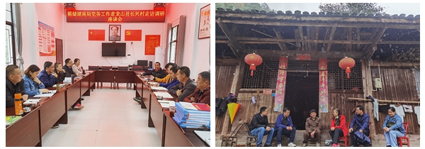 10月14日至16日,国家粮食和物资储备局湖南局二级巡视员宋燕燕同志率局党务工作者一行,到龙山县长兴村开展党建工作调研,深入了解扶贫点党建工作、党员思想建设和模范带头作用发挥等情况,并走访慰问老党员,调研茶叶基地、茶叶生产车间、村级养殖场和村级户间道项目等建设情况。