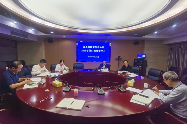 9月29日,省工商联党组理论学习中心组以“深入学习贯彻《习近平谈治国理政》第三卷,坚持和加强党的全面领导”为主题,进行2020年第十一次专题集中学习。党组书记陈潇主持并作学习小结。