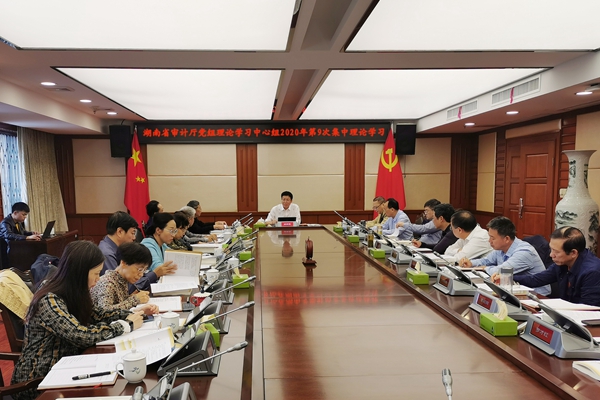 9月30日,省审计厅党组理论学习中心组开展2020年第9次集中学习,厅党组书记、厅长胡章胜主持学习,厅党组理论学习中心组成员、非党组成员厅领导、机关各党支部书记、非党员处长共40余人参加学习。