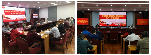 9月28日,国家粮食和物资储备局湖南局先后组织召开干部职工大会和分党组理论学习中心组学习会议,认真传达学习习近平总书记在湘考察调研时的系列重要讲话指示、湖南省委相关会议精神和国家粮食和物资储备局抗击新冠肺炎疫情表彰大会精神,并围绕有效推动习近平总书记重要讲话精神在湖南局落地落实展开研讨交流。