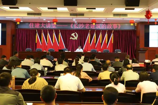 为落实习近平总书记关于历史文化遗产保护的有关精神。近日,省住房城乡建设厅邀请湖南大学建筑学院教授、博士生导师柳肃教授举办住建大讲堂——《长沙老建筑的故事》专题讲座,会议由省住房城乡建设厅一级巡视员高东山主持,在家厅领导、厅机关及直属单位全体干部职工180余人参加讲座。