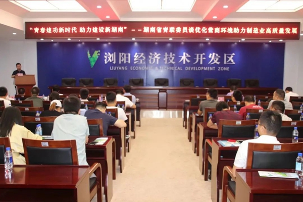 此外,省青联还组织部分青联委员开展了“青春建功新时代 助力建设新湖南”——湖南省青联走进浏阳经开区活动。在浏阳经开区,委员们考察了规划展示馆和盐津铺子、蓝思科技总部等企业,并与浏阳市委领导、高新区以及部分企业负责人就“优化营商环境助力制造业高质量发展”进行了座谈交流。吕诚伦、刘清、罗栋、邹红艳、周帅、窦祝平等委员,分别在人才引进和管理、人文艺术的培养、企业融资与发展、法律问题、公共服务设施建设、优化运行环境等方面,为助推浏阳经开区经济社会发展建言献策。