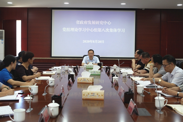 8月20日上午,中心党组书记、主任谈文胜主持开展党组理论学习中心组第八次集体学习。谈文胜领学了《中共湖南省委办公厅关于认真学习贯彻<习近平关于力戒形式主义官僚主义重要论述选编>的通知》和《省委宣传部、省委组织部关于认真组织学习<习近平谈治国理政>第三卷的通知》,在家班子成员分别领学了意识形态领域有关文件。经济预测部部长李学文、政务服务部部长唐细华作中心发言。二级巡视员、各部室(所属单位)负责同志参加学习。