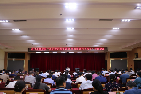 8月4日上午,省卫生健康委开展“强化政治机关意识、努力做到‘四个带头’”专题党课,委党组书记、主任陈小春以“加强党的政治建设,强化政治机关意识,以‘四个带头’推动卫生健康事业高质量发展”为主题,为全委党员干部讲专题党课。委党组副书记、副主任、省中医药管理局局长黄惠勇主持。