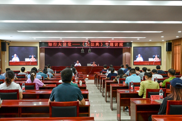 王霞以“《民法典》时代精神与制度亮点”为题,围绕民法典的编撰意义、对权利保护的基本特征和对新时代中国问题的回应等多个方面,进行了全面详实的解读,并结合实际案例分享了《民法典》的亮点和重点。与会人员纷纷表示,这次讲座理论体系清晰,法理分析到位,阐释严谨深刻,帮助大家增强了知法学法、普法用法的意识,将带头学好、守好、用好民法典。