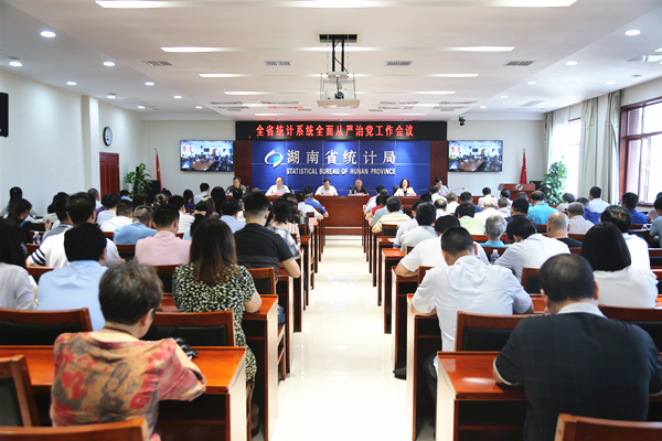 省统计局全体党员干部职工在主会场参加会议。各市州、县市区统计局领导班子成员、派驻纪检监察组组长、科室(股)主要负责人,以及局机关党委、机关纪委全体干部在各地分会场参加会议。(省统计局 供稿)