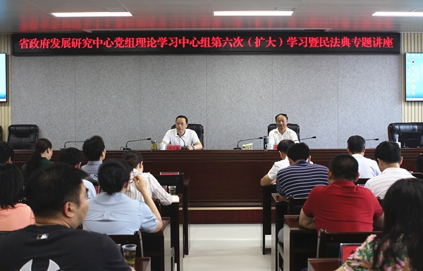 为了更好地推动民法典的精神内涵和条文规定在中心落地生根,7月9日,省政府发展研究中心召开党组理论学习中心组第六次(扩大)学习,邀请湘潭大学法学院彭熙海教授作民法典专题辅导讲座。中心党组书记、主任谈文胜主持学习,全体党员干部参加学习。
