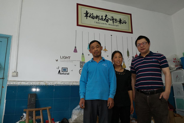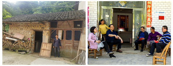 彭作海建档立卡前的旧屋 扶贫人员在彭作海新建楼房前