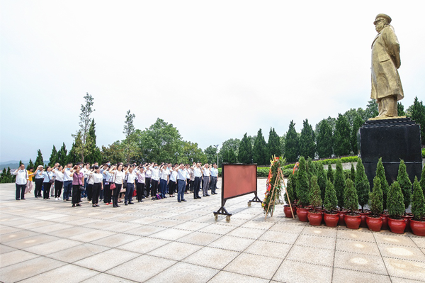上午10时许,中心全体党员干部来到罗荣桓元帅铜像广场,怀着敬仰之情敬献花篮,深情三鞠躬,瞻仰元帅铜像。在铜像前,全体党员高举右手,重温入党誓词,铭记初心使命。