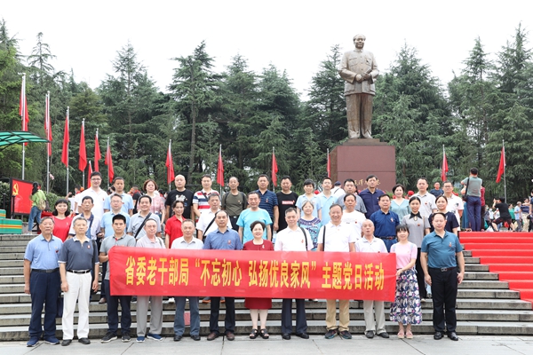 为庆祝中国共产党成立99周年,继承和发扬党的光荣传统和优良作风,6月30日,省委老干部局组织全体在职党员和退休党员赴韶山开展“不忘初心、弘扬优良家风”主题党日活动,实地接受传统革命教育,学习毛泽东同志为党和人民事业不懈奋斗的崇高品质、始终不渝的革命精神和优良的家教家风。局领导龚健、皮巨飞、黄孝亮以普通党员身份参加了主题党日活动。