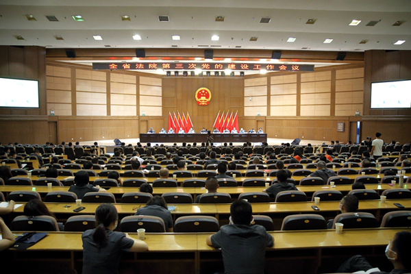 湖南高院在家院领导、厅级干部、机关全体干警和老同志代表在主会场与会。全省各中、基层法院,长沙、衡阳、怀化铁路运输法院的全体干警通过视频会议在分会场与会。(湖南高院 李果)
