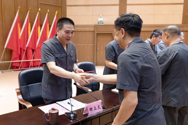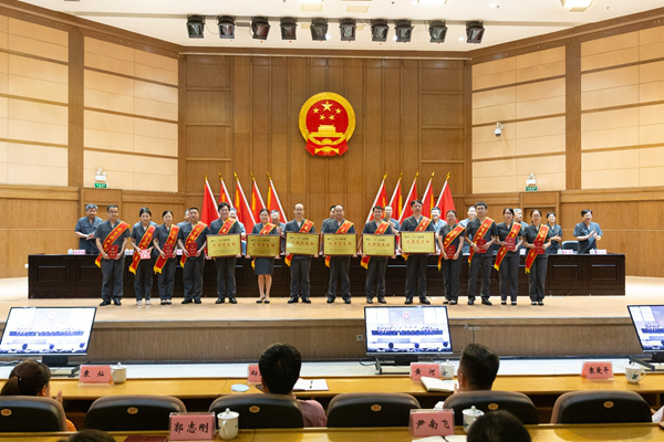 为庆祝第99个建党节,表彰先进,激励队伍,6月30日上午,湖南高院对院机关2019年度先进党支部、优秀共产党员、优秀党务工作者进行表彰,并为全省法院荣誉天平纪念章获得者代表颁发了奖章和证书。湖南高院党组书记、院长田立文等在家院领导为获奖代表颁奖。