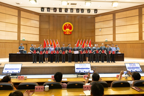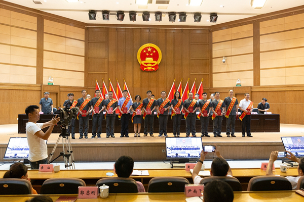 此外,湖南高院刘东河、长沙中院范登峰等15名同志作为全省法院荣誉天平纪念章获得者代表,在会场领取了荣誉天平纪念章。荣誉天平纪念章是最高人民法院为长期献身于人民司法事业的法院工作人员专门设立的荣誉奖项,截至2019年11月30日,全省法院共有244名同志从事法院工作满30年,他们勤勉敬业,扎实工作,三十年如一日,把最美好的青春年华奉献给人民法院,将毕生的精力都倾注于审判事业,用自己的青春和汗水,为全省法院事业贡献了全部智慧和力量。