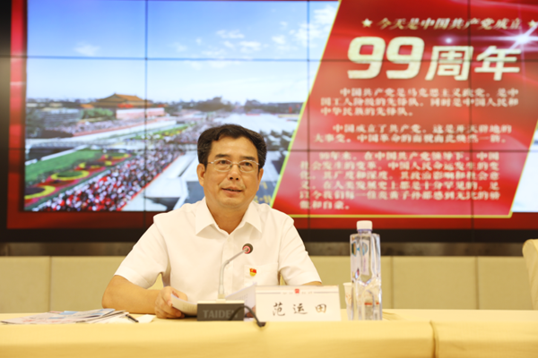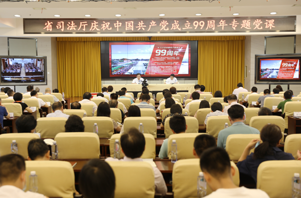 7月1日上午,省司法厅党组书记、厅长范运田以“让党旗在全省司法行政系统高高飘扬”为题,为省直司法行政系统党员干部讲专题党课,庆祝中国共产党成立99周年。厅党组副书记、副厅长方华堂主持。